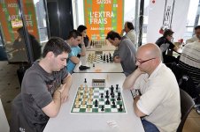 Les 38 joueurs qui ont profité de cette journée intense et très vivante ne l’ont pas du tout regretté ! L’échiquier géant a beaucoup attiré les enfants et les parents accompagnateurs, il a permis de s’occuper en attendant la fin des joutes des premières tables. Match serré entre les deux favoris qui se sont rencontrés à la quatrième ronde, et ce fut rude de maintenir l’égalité jusqu’à la septième.