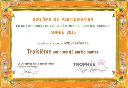 La Ligue Midi-Pyrénées est classée 3ème pour son nombre (42) de participantes au championnat de ligue féminin de parties rapides en 2015, record à battre en 2016.