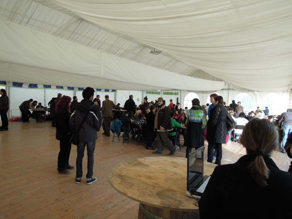 Un prêt de salle pas si évident avec la proximité des fêtes et la multiplication des arbres de Noël. Du coup nous n’avons pu avoir autant de tables et chaises que demandées pour accueillir les nombreux accompagnateurs. Mais finalement, avec les quelques tables et chaises pliantes amenées par les accompagnateurs, ainsi que quelques tonneaux-tables récupérés, la salle s’est finalement bien organisée et la journée s’est déroulée dans la bonne humeur.