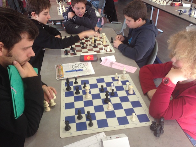 Ils jouent 3 matchs dans la journée : cadence : 50min + 10s pour les 3 premiers échiquiers, 2 parties de 25min + 10s pour les poussins. Ces derniers peuvent ne pas noter mais tous les joueurs doivent avoir une licence A.