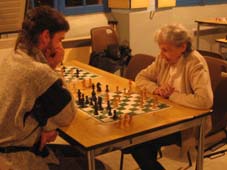 Elle s’appelle Suzanne Dedieu, elle est licenciée B au club de Loures-Barousse, et du haut de ses 88 printemps madame Dedieu a passée une grande partie de l’après-midi de ce dimanche, debout à regarder avec attention les parties de la rencontre de nationale 4 entre Loures-Barousse et Colomiers ; avant de s’adonner à la fin de la rencontre à quelques parties bien animées contre Michel Cordier, un de ses camarades de club !!