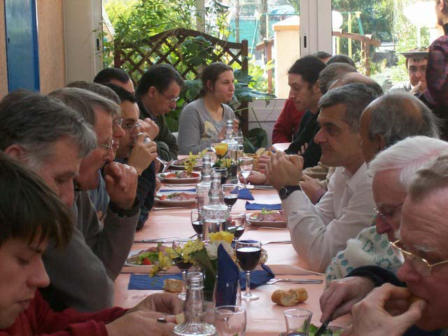 Avec les dix minutes à pied pour se rendre dans ce petit restaurant "Saint-Agne" le repas de midi a pris un peu trop de temps. Il faut dire aussi qu’il a fallu que nos hôtes rajoutent des tables et des chaises, parce que l’assistance était plus nombreuse que prévue (et oui ce n’était pas pour rien qu’on demandait de s’inscrire à l’avance :) )