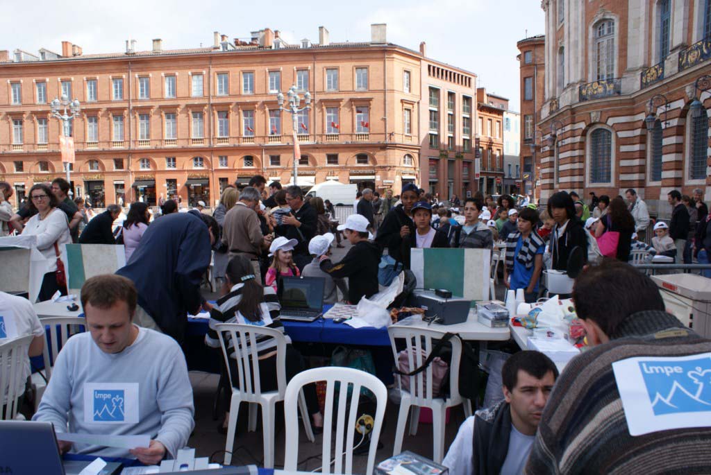 Tout d’abord la mairie de Toulouse qui nous prête l’espace, des dizaines de table des centaines de chaise, et nous a offert trois cent casquettes.