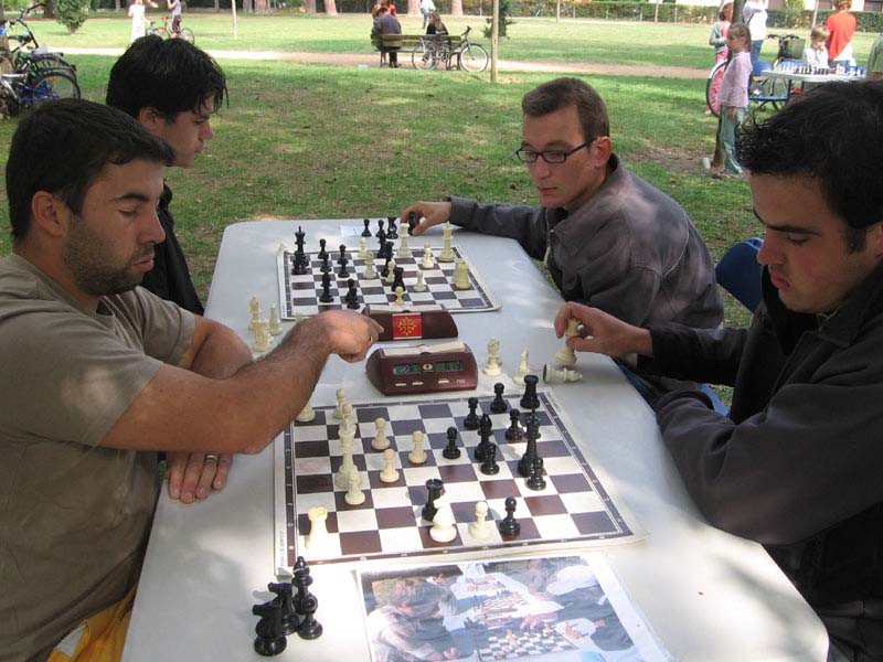 L’occasion pour les amoureux du roi des jeux d’honorer sa mémoire, ensemble, dans le cadre très agréable du Parc Duroch, avec ses pins et micocouliers majestueux.Avec les moteurs qui se taisent, les pédaliers des vélos qui chouinent, les sabots des chevaux qui piaffent...le tournoi d’échecs démarre...